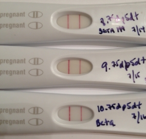 I am totally doing the happy dance. Today was a fantastic day. I went by the clinic for the 2nd Beta blood draw on my way into work. I'm so happy that they open at 7:30am, that way I can still make it to work by 8am. I got there a little before 7:30, so actually had to wait for them to open. There were several other people there too. I always wonder what they are there for. First consult, ultrasound, blood work, etc. and figure they may be wondering the same thing. I didn't have to wait long and then went back for the blood draw. Left around 7:40am and headed to the office. Now, to wait for the results. Here's the test from this morning, yesterday and the one from the morning of the first Beta too.